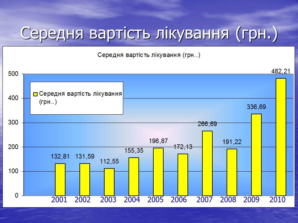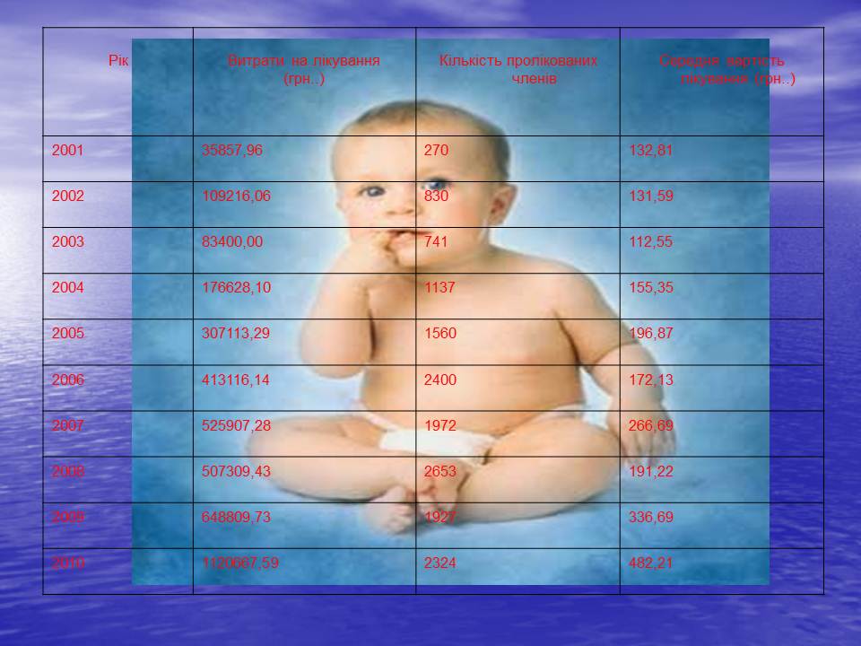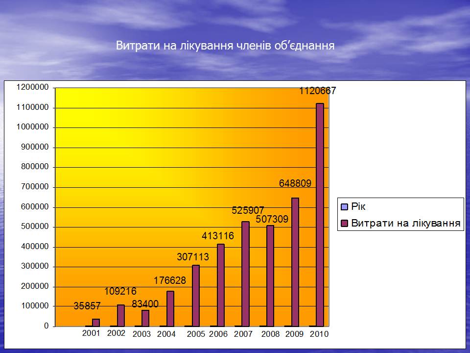 Середня вартість лікування становить - 482,21 грн.; У зв'язку із зростанням цін на фармацевтичні препарати збільшуються витрати на лікування членів об'єднання.