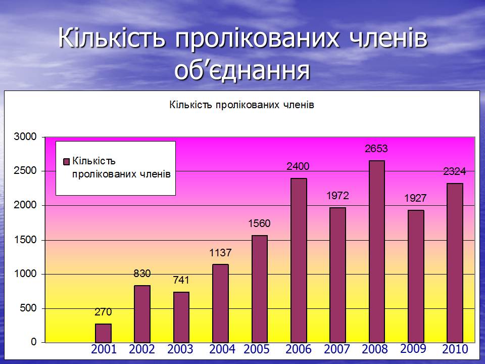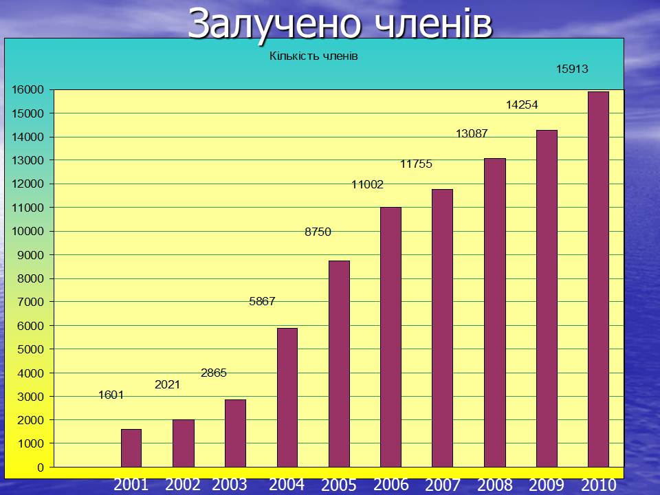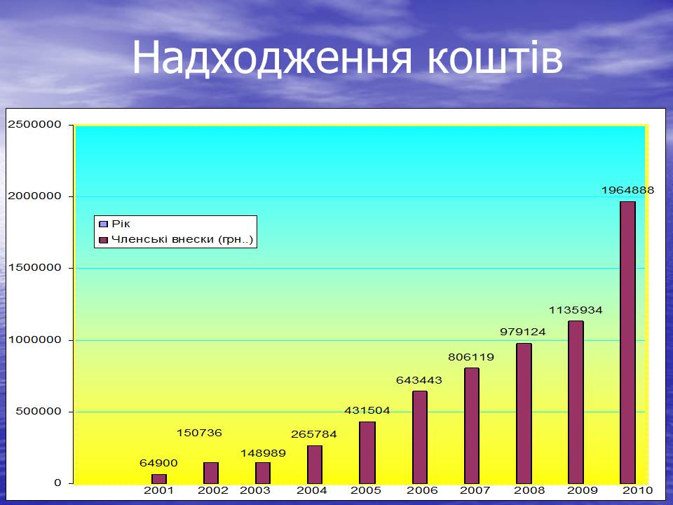 Згідно представлених слайдів ми можемо спостерігати позитивну динаміку надходження коштів, та залучення членів об’єднання.