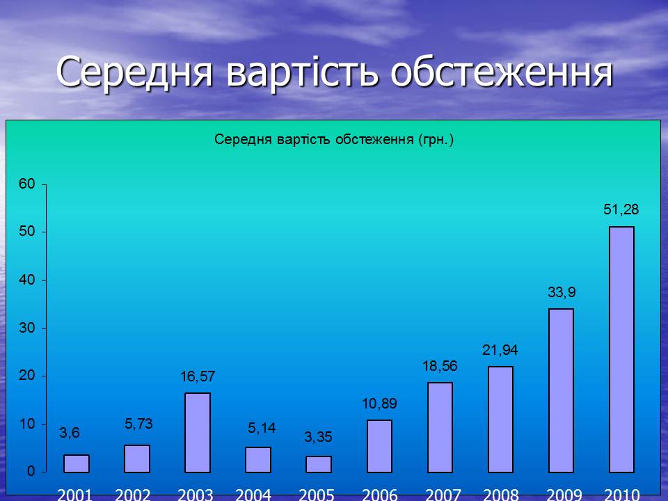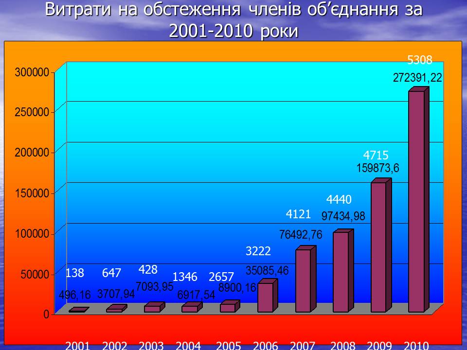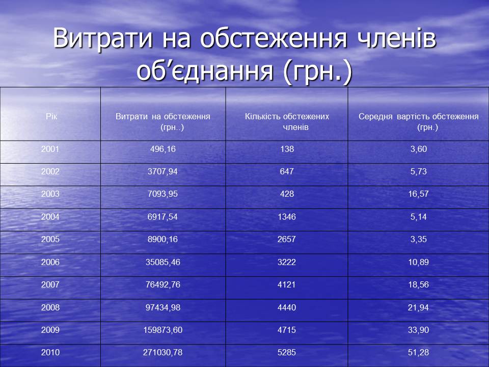 На обстеження-271,0 тис. грн., оплативши обстеження 5285 членів об’єднання. Середня вартість обстеження становить -51,28 грн.