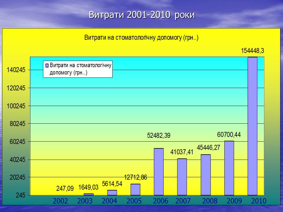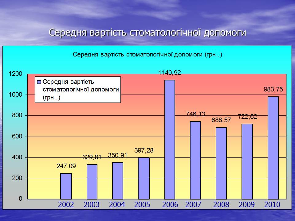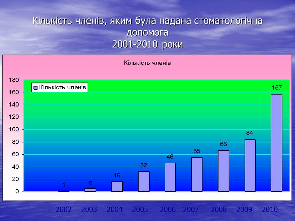 На стоматологічну допомогу витрачено 154,5 тис. грн., оплативши стоматологічну допомогу 157 членам об’єднання. Середня вартість лікування становить – 983,75 грн.