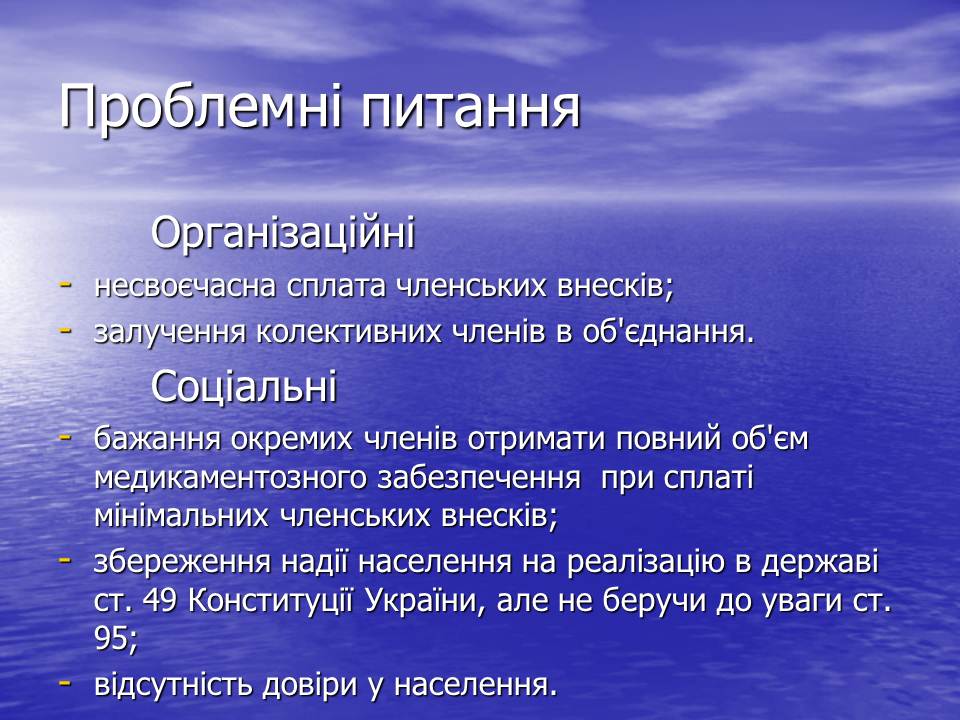 - бажання окремих членів отримати повний об'єм медикаментозного забезпечення та діагностичного обстеження при сплаті мінімальних членських внесків;