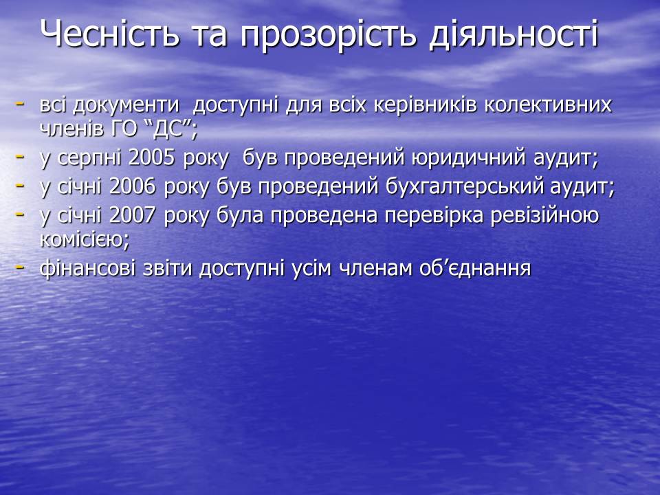 Але в роботі організації ми дотримуємося принципів чесності та прозорості :