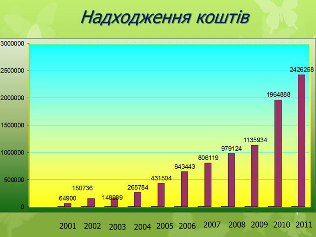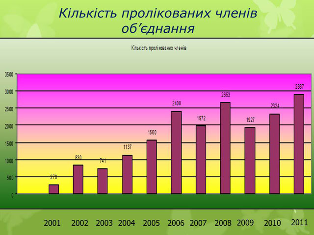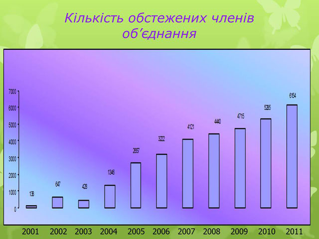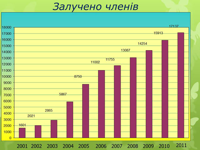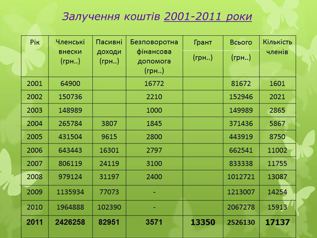 Згідно представлених слайдів ми можемо спостерігати позитивну динаміку надходження коштів, та залучення членів об’єднання.