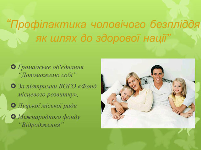 Метою проекту булло інформування молоді Луцька шляхом залучення профільних лікарів про існування зовнішніх чинників, які є шкідливими для їх здоров’я, та які пізніше можуть вилитися у чоловіче безпліддя.