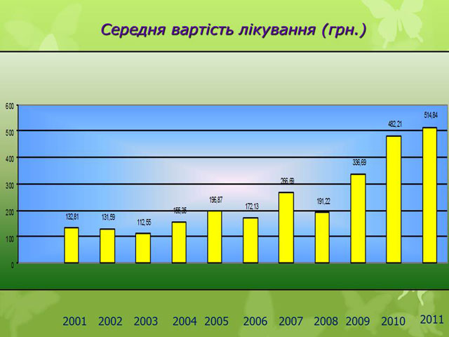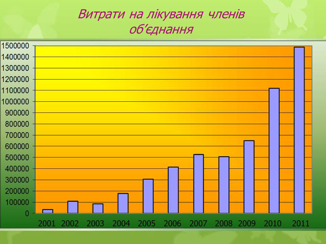 Середня вартість лікування становить - 514,841 грн.; У зв'язку із зростанням цін на фармацевтичні препарати збільшуються витрати на лікування членів об'єднання.