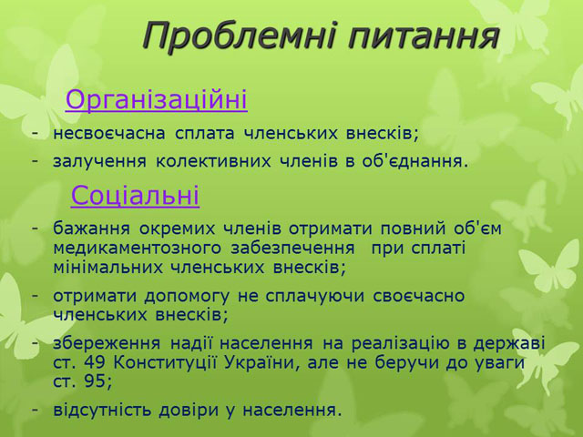 - бажання окремих членів отримати повний об'єм медикаментозного забезпечення та діагностичного обстеження при сплаті мінімальних членських внесків;